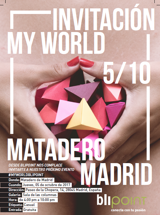 Blipoint, la red social para artistas, fotógrafos y amantes del arte y la fotografía realiza una Exposición con los ganadores del concurso MyWorld. Un concurso que requería que los fotógrafos captaran nuestra esencia, todo aquello que nos rodea y compone nuestra identidad: sociedad, cultura, momentos y sentimientos…